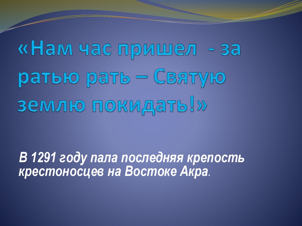 В 1291 году пала последняя крепостькрестоносцев на Востоке Акра.
