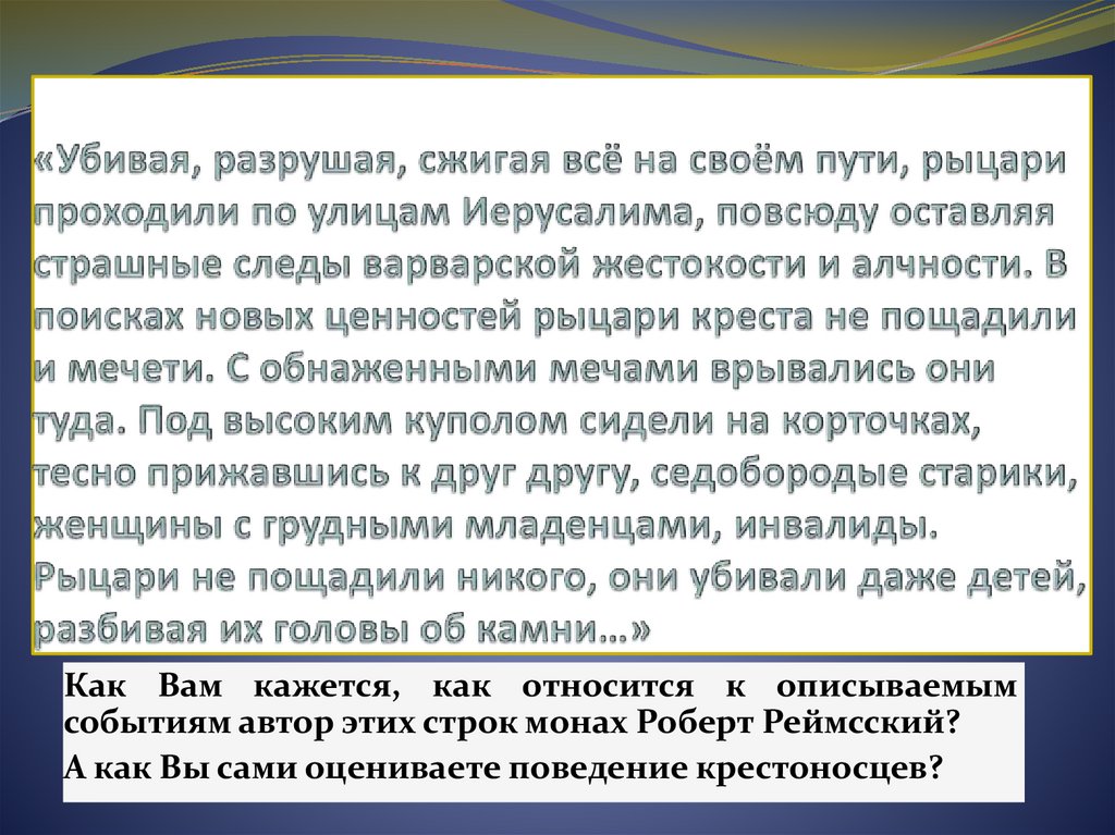 Как Вам кажется, как относится к описываемымсобытиям автор этих строк монах Роберт Реймсский?