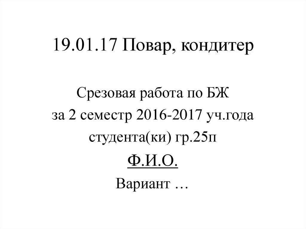 Срезовая работа по БЖза 2 семестр 2016-2017 уч.года