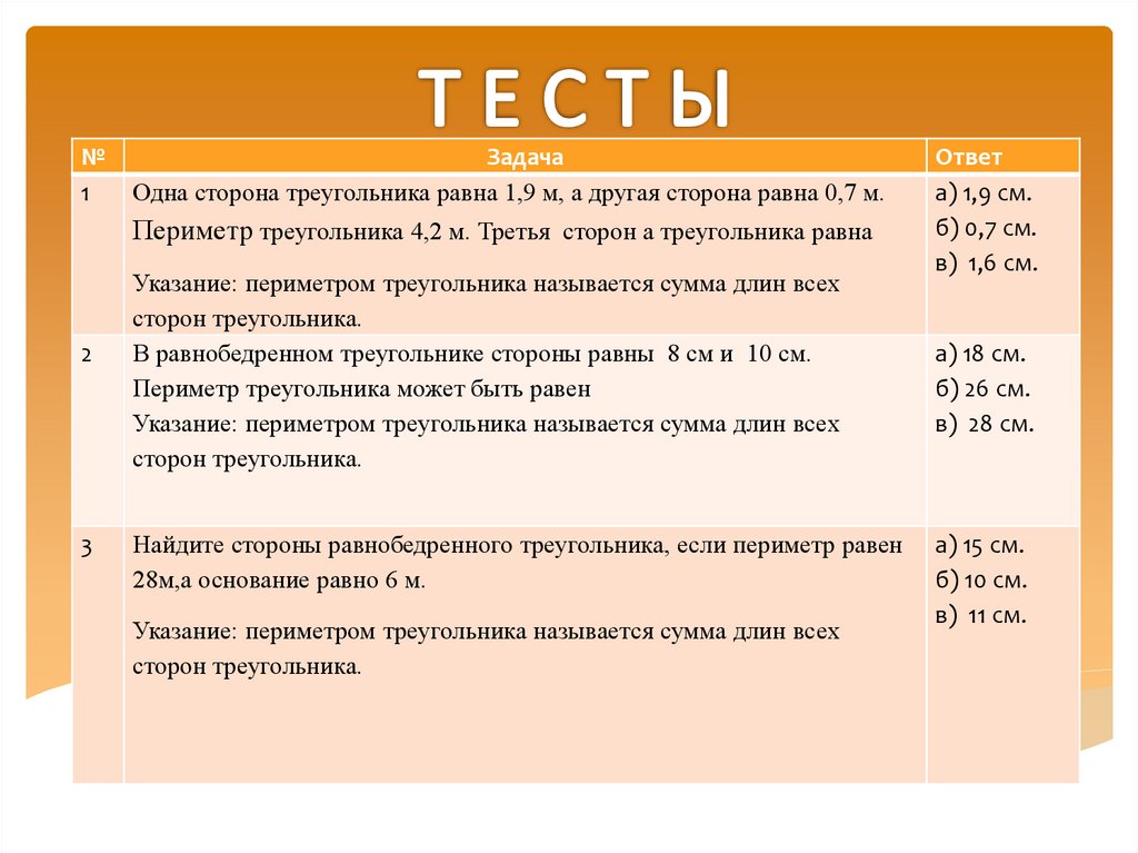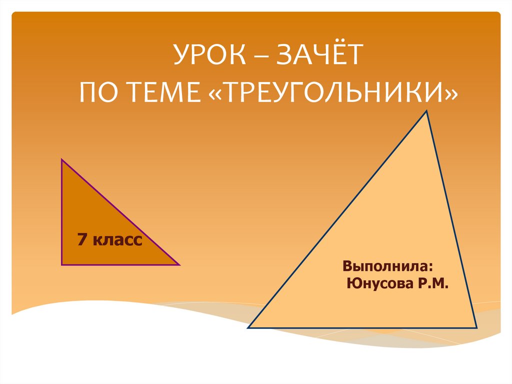 1. УРОК – ЗАЧЁТ ПО ТЕМЕ «ТРЕУГОЛЬНИКИ»