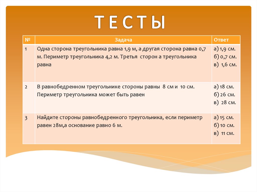 Периметр треугольника 4,2 м. Третья сторон а треугольника равна