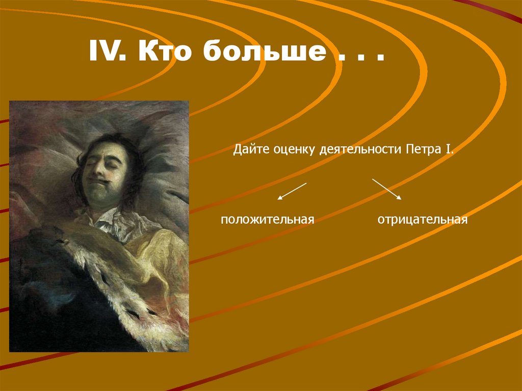 IV. Кто больше . . .Дайте оценку деятельности Петра I.