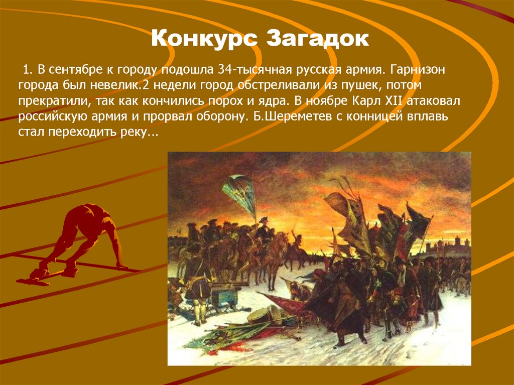 Конкурс Загадок1. В сентябре к городу подошла 34-тысячная русская армия. Гарнизон
