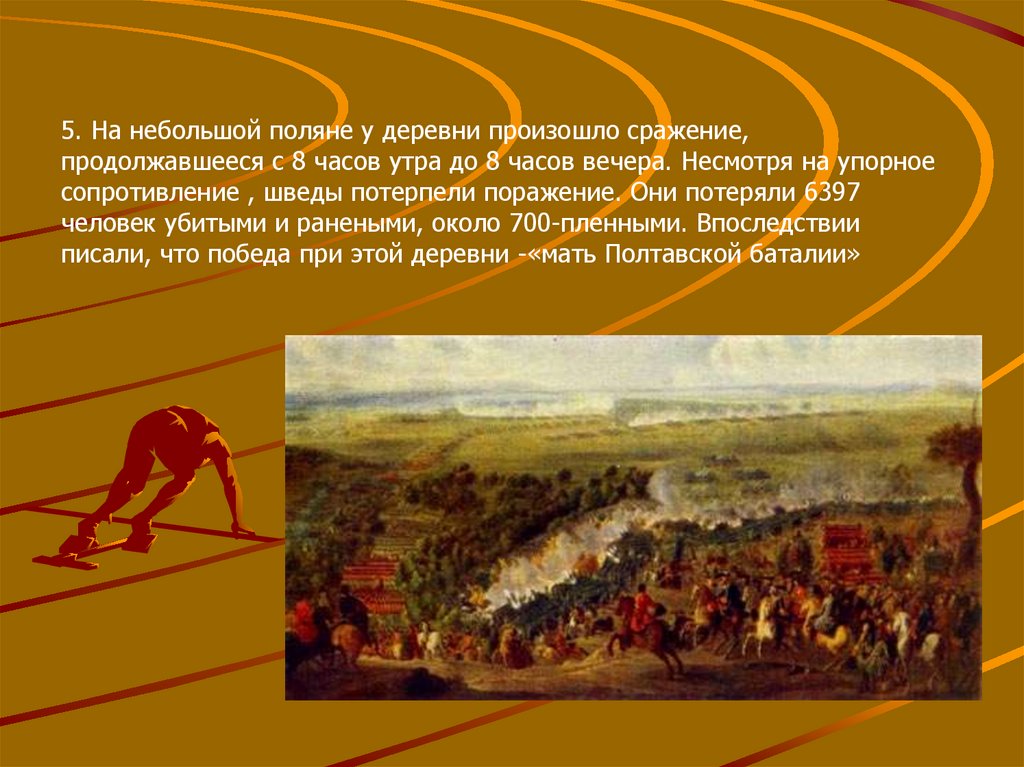 5. На небольшой поляне у деревни произошло сражение,продолжавшееся с 8 часов утра до 8 часов вечера. Несмотря на упорное