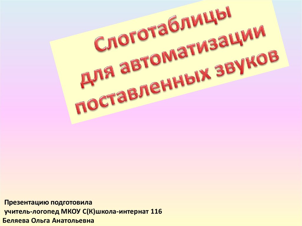 Презентацию подготовилаучитель-логопед МКОУ С(К)школа-интернат 116