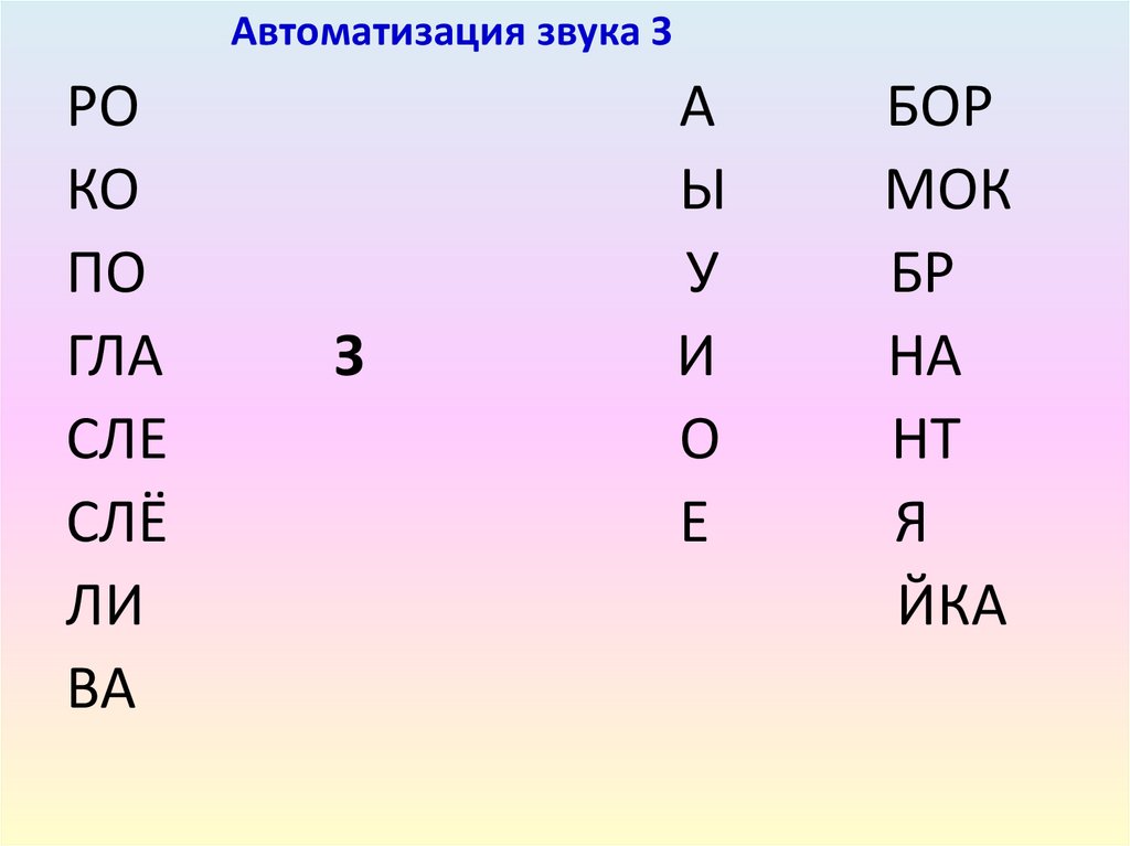 2. Слоготаблицы применяются на этапе автоматизации поставленных звуков у детей младшего школьного возраста, овладевших техникой