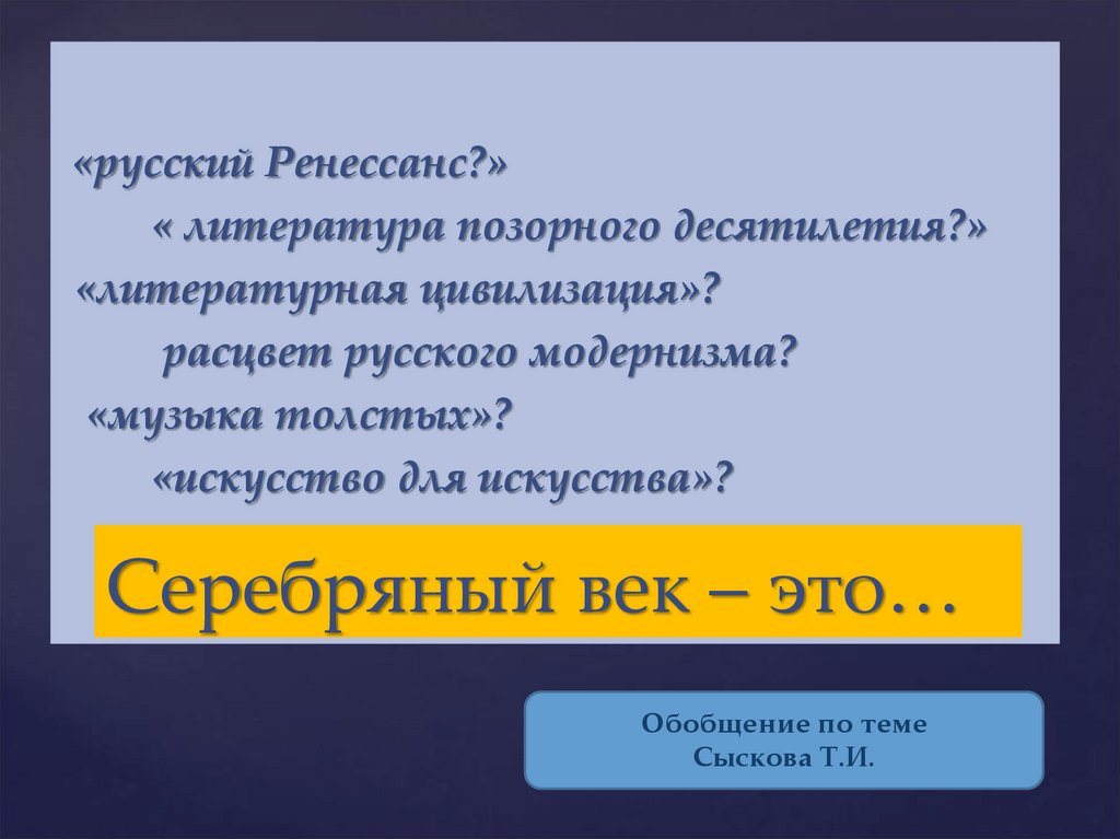 «русский Ренессанс?»« литература позорного десятилетия?»