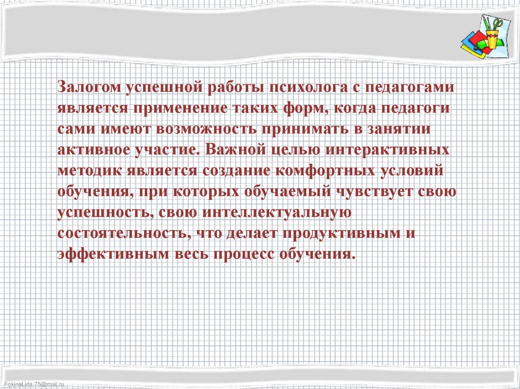 Залогом успешной работы психолога с педагогамиявляется применение таких форм, когда педагоги