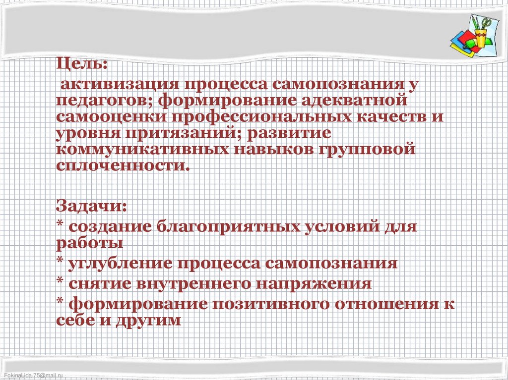 Цель:активизация процесса самопознания у