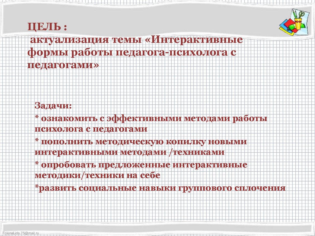 * ознакомить с эффективными методами работы