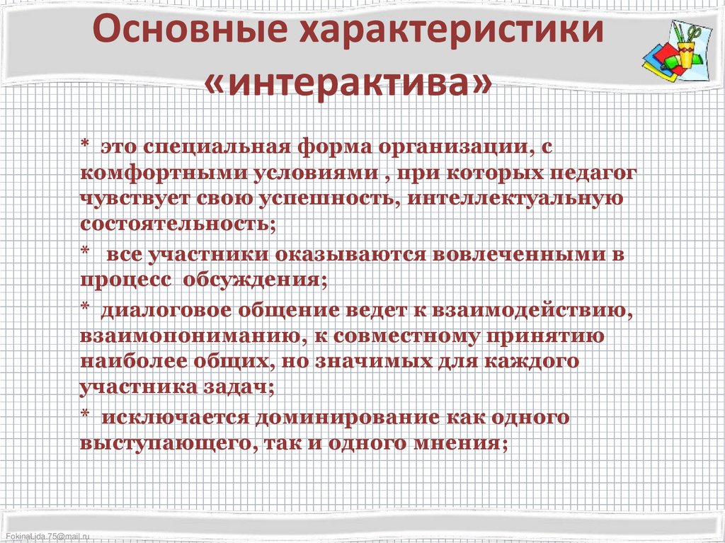 Основные характеристики«интерактива»