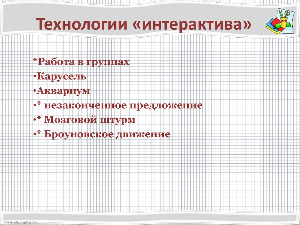 Технологии «интерактива»*Работа в группах