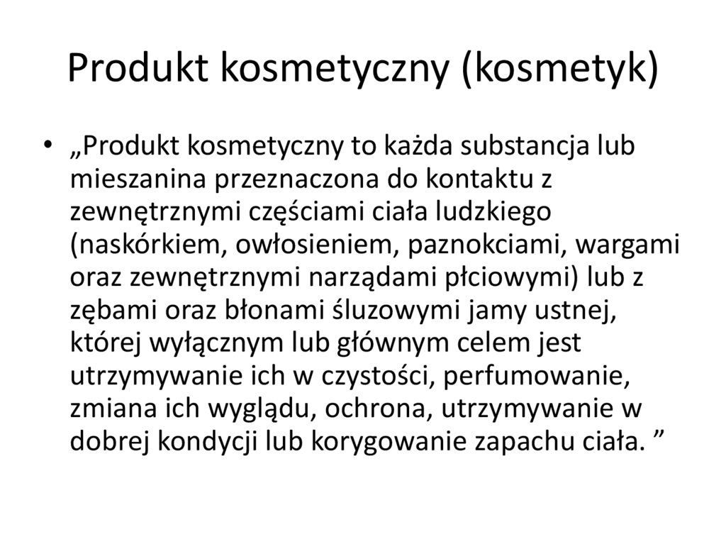 Produkt kosmetyczny (kosmetyk)• „Produkt kosmetyczny to każda substancja lub