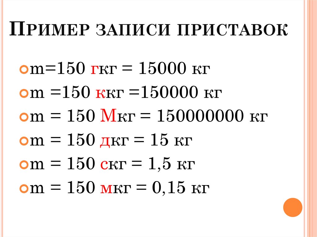ПРИМЕР ЗАПИСИ ПРИСТАВОКm=150 гкг = 15000 кг