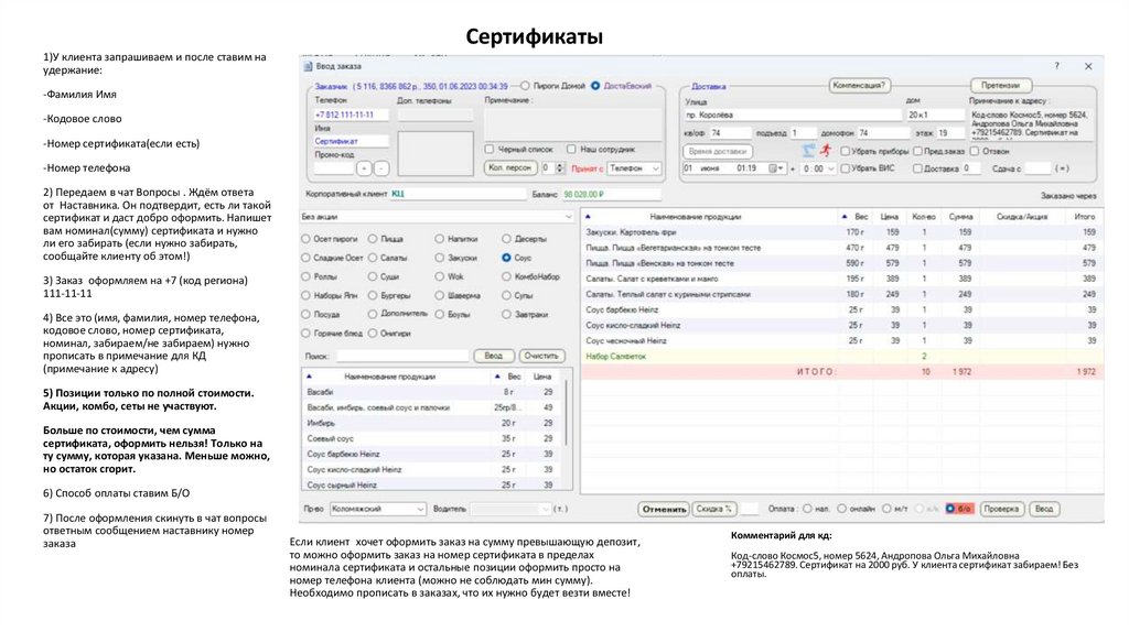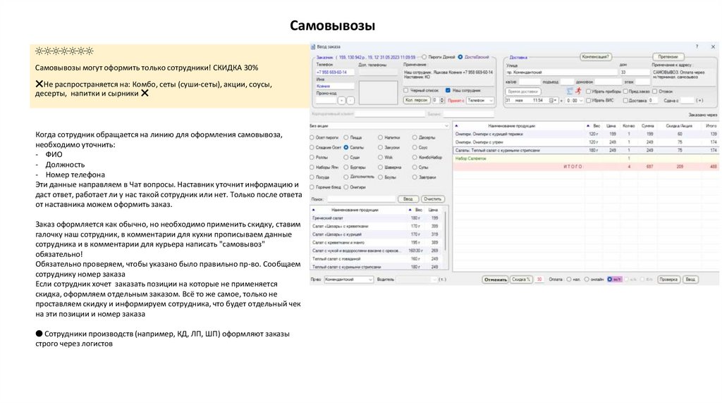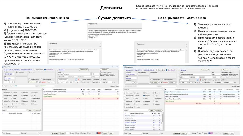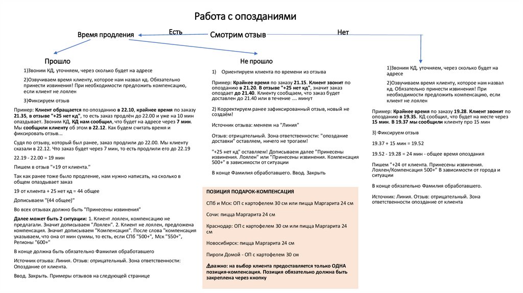 Пример: Клиент обращается по опозданию в 22.10, крайнее время по заказу