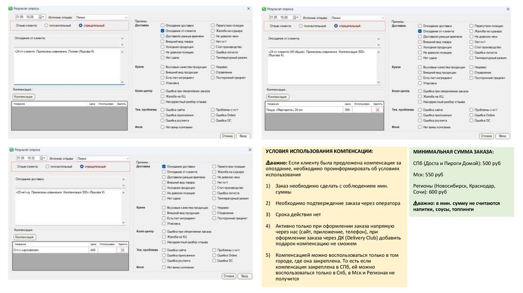 извинения. Лоялен" или "Принесены извинения. Компенсация