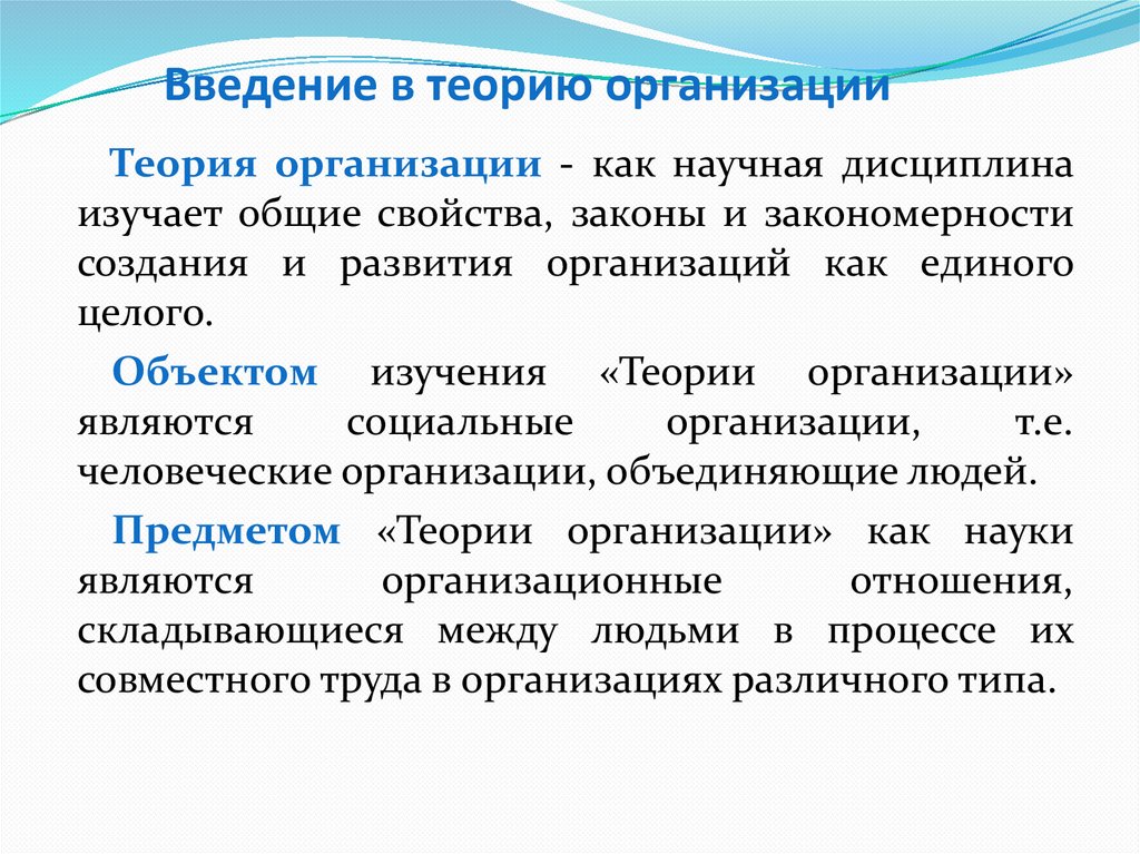 Введение в теорию организацииТеория организации - как научная дисциплина