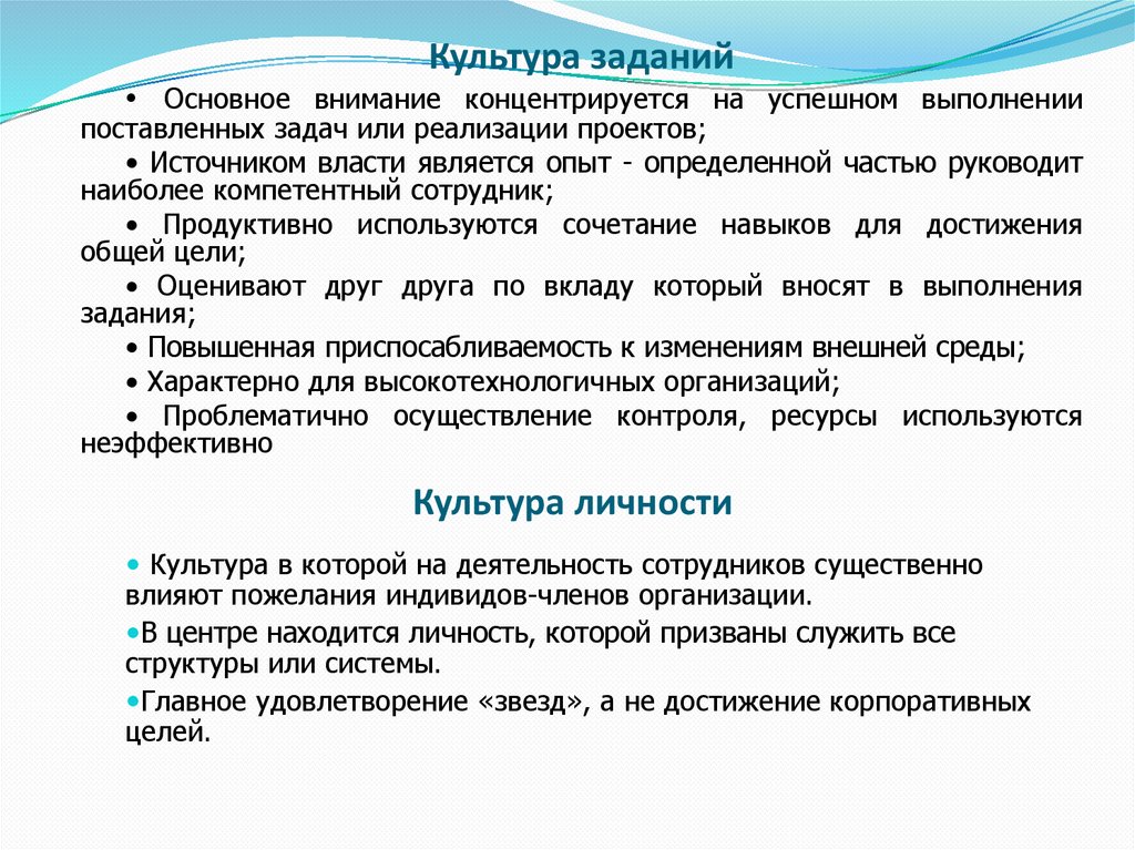 Культура заданий• Основное внимание концентрируется на успешном выполнении