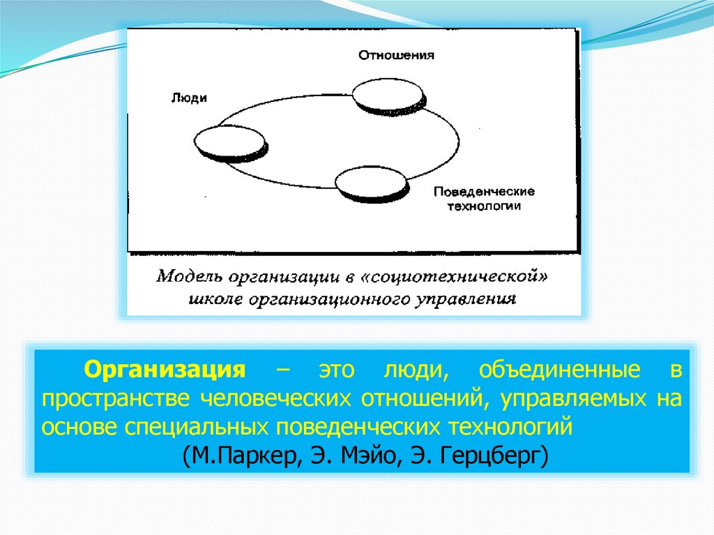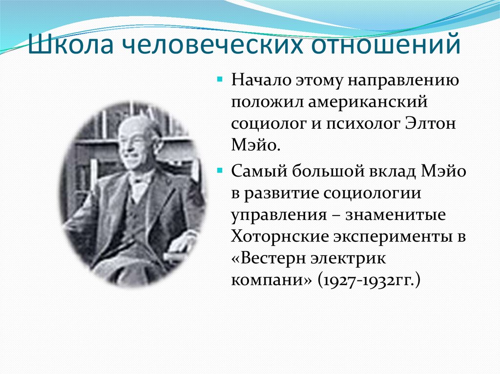 М. Паркер, Э. Мэйо, А. Маслоу, К. Арджирис, Р. Лайкерт, Д. Макгрегор, Ф. Герцберг