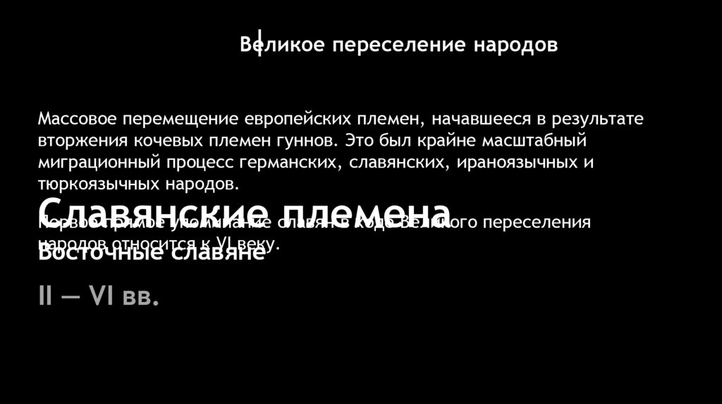 Со второй половины VI в. славяне становятся главнымдействующим лицом Великого переселения народов,