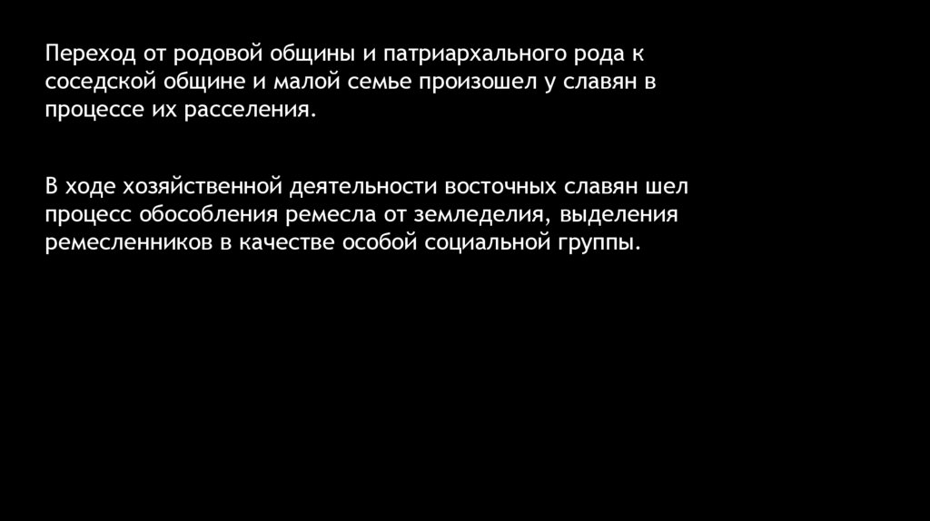 Переход от родовой общины и патриархального рода ксоседской общине и малой семье произошел у славян в