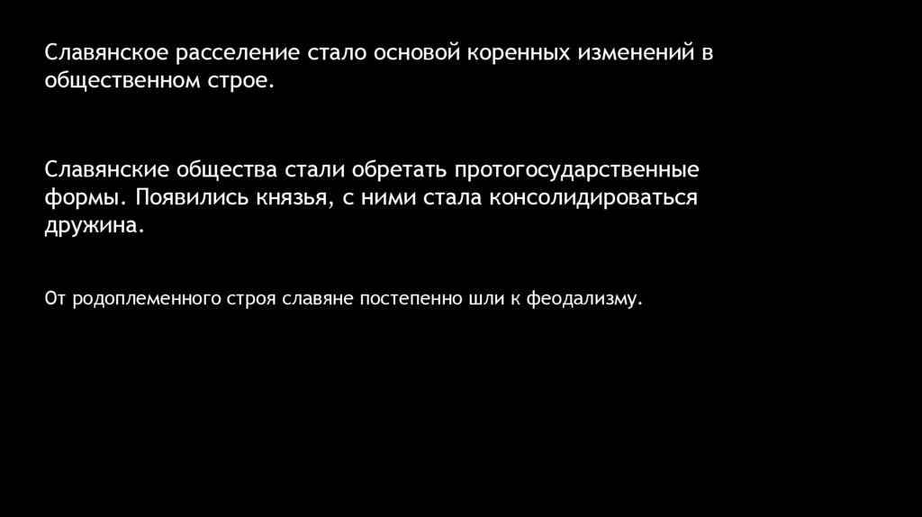 Славянское расселение стало основой коренных изменений вобщественном строе.