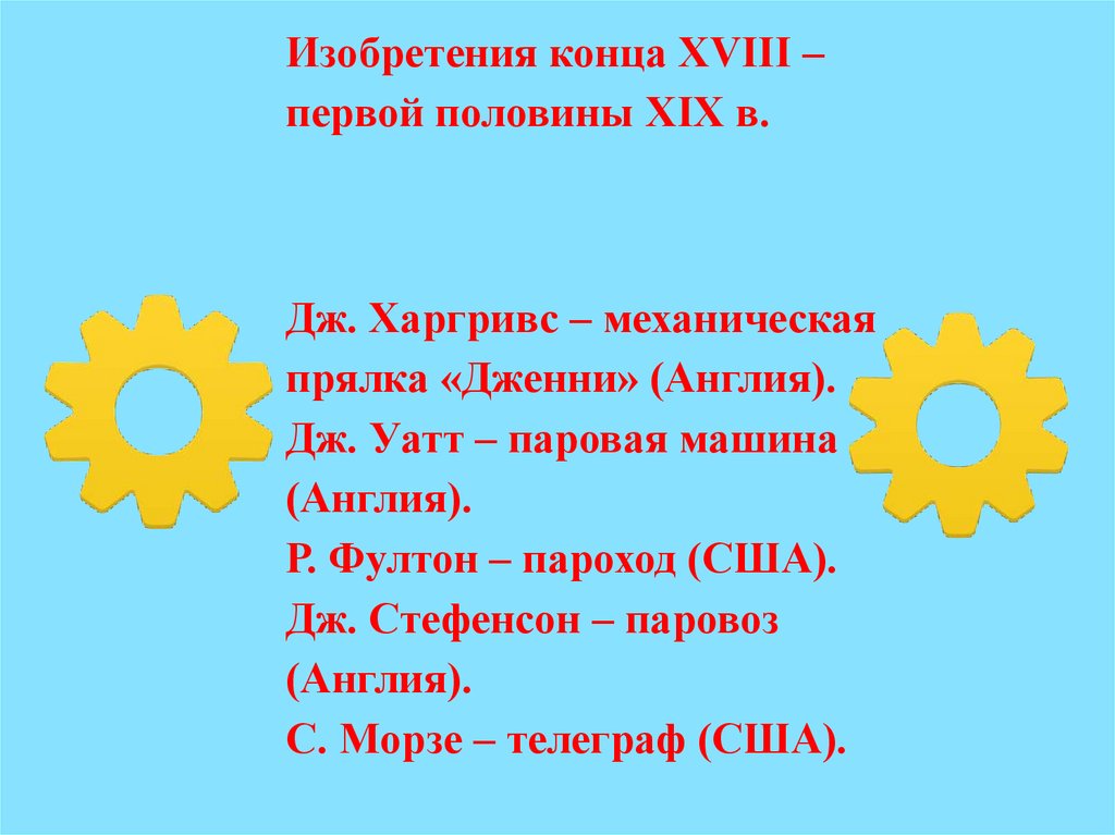Изобретения конца XVIII –первой половины XIX в.
