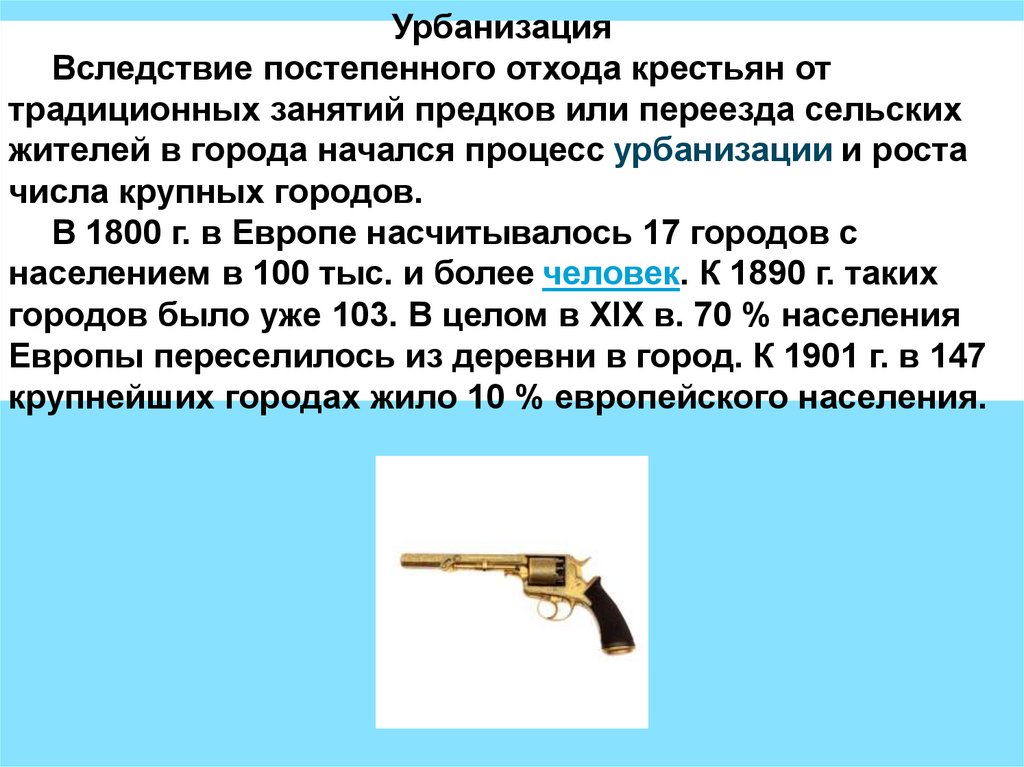 жителей в города начался процесс урбанизации и роста