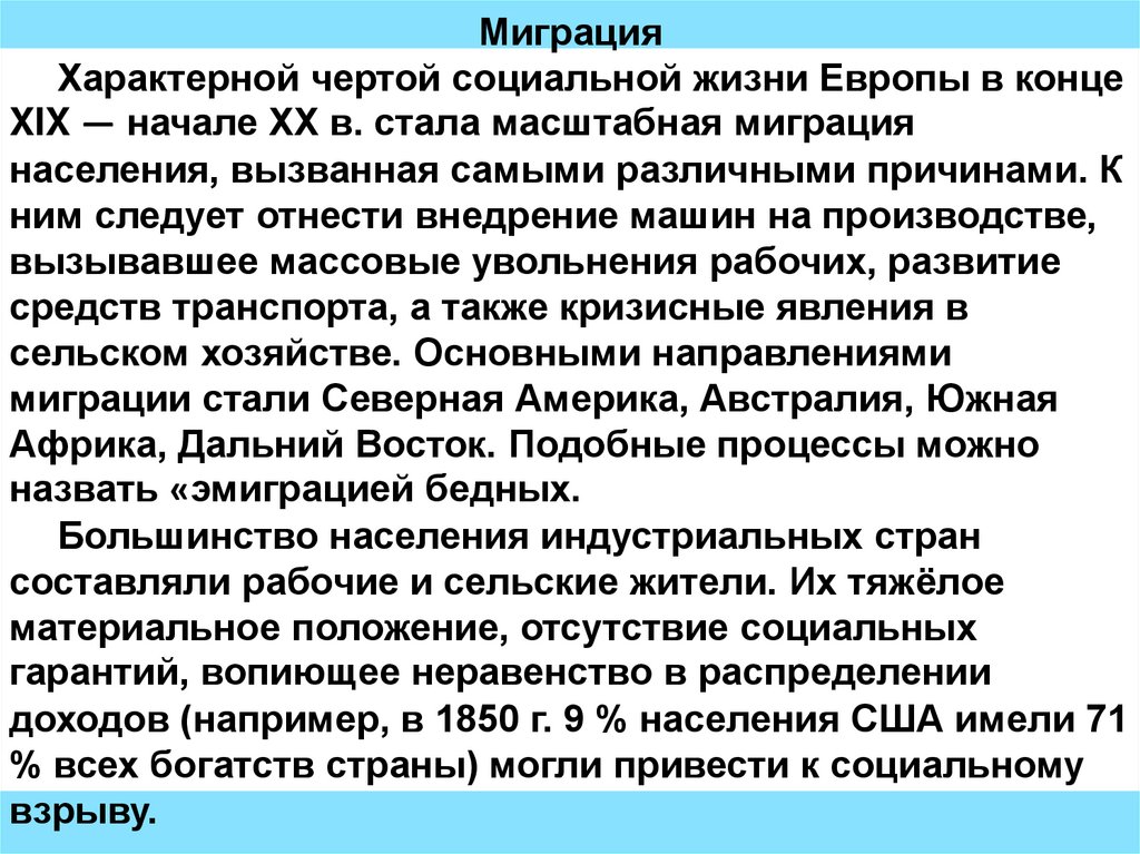 МиграцияХарактерной чертой социальной жизни Европы в конце