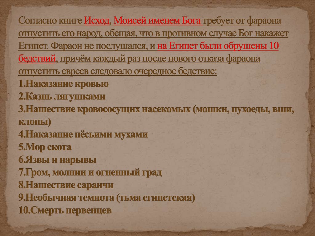 Моисее и исходе евреев из Египта в Землю