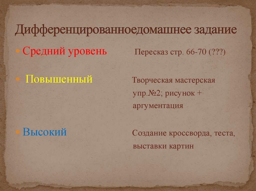 Средний уровеньПовышенный