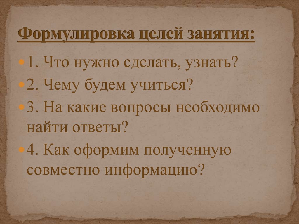 1. Что нужно сделать, узнать?2. Чему будем учиться?