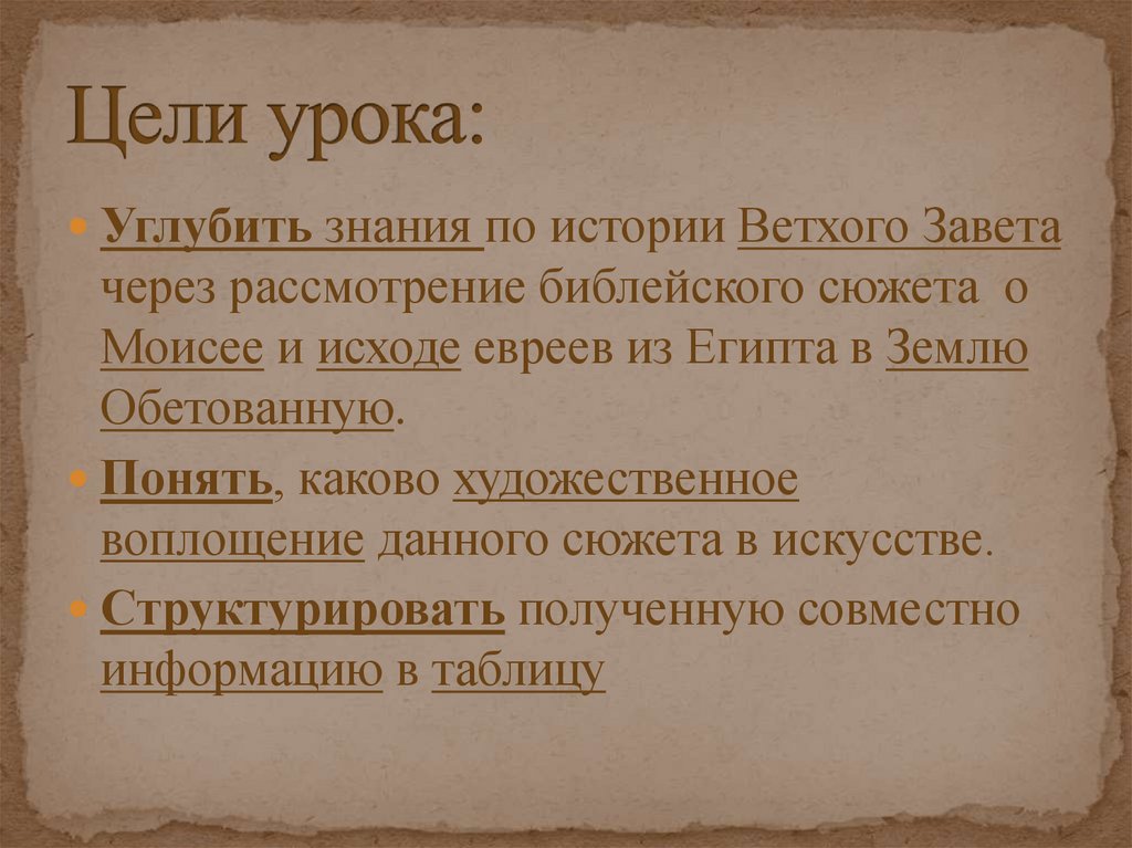 Углубить знания по истории Ветхого Заветачерез рассмотрение библейского сюжета о