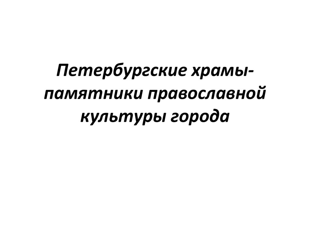 Петербургские храмыпамятники православнойкультуры города