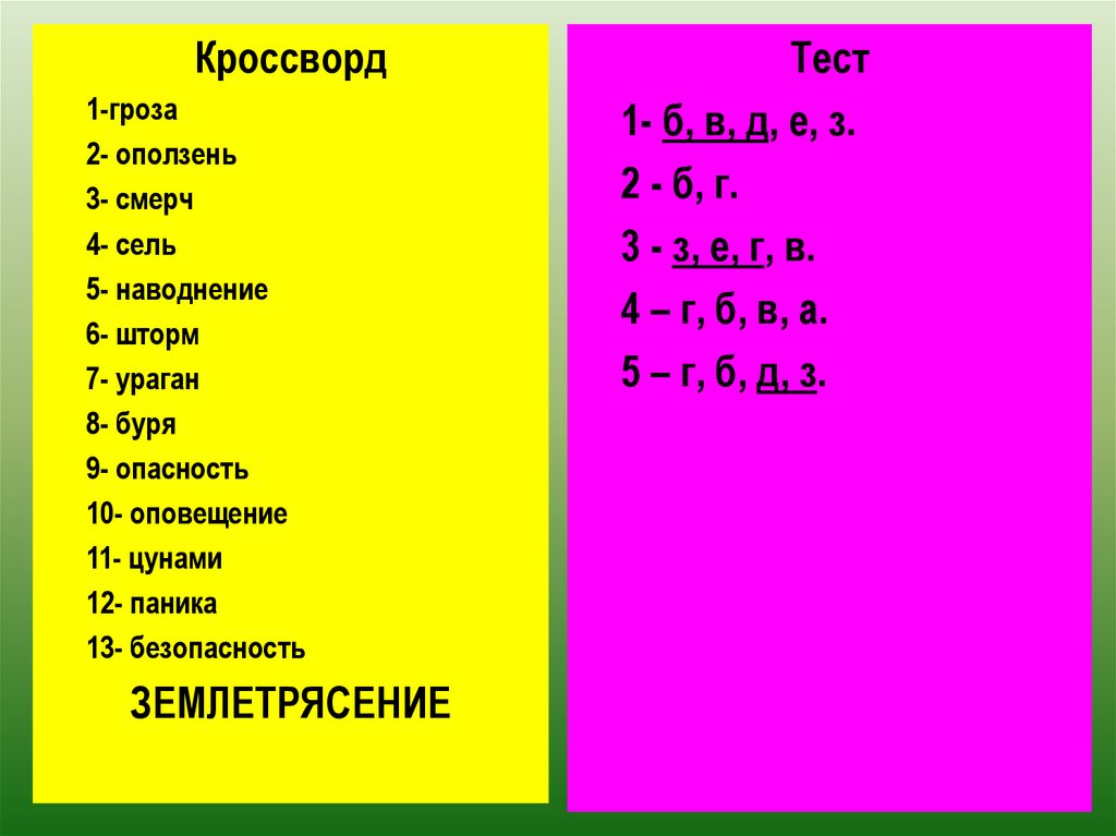 Чрезвычайные ситуации природного характера. Урок-обобщение
