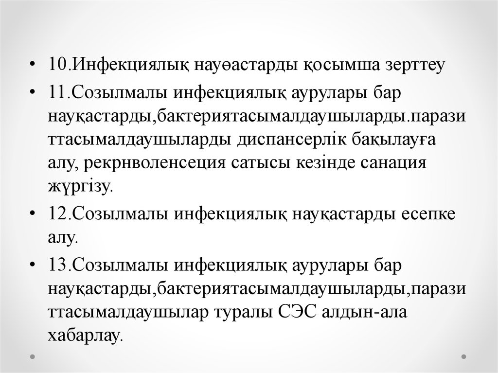 • 10.Инфекциялық науөастарды қосымша зерттеу• 11.Созылмалы инфекциялық аурулары бар