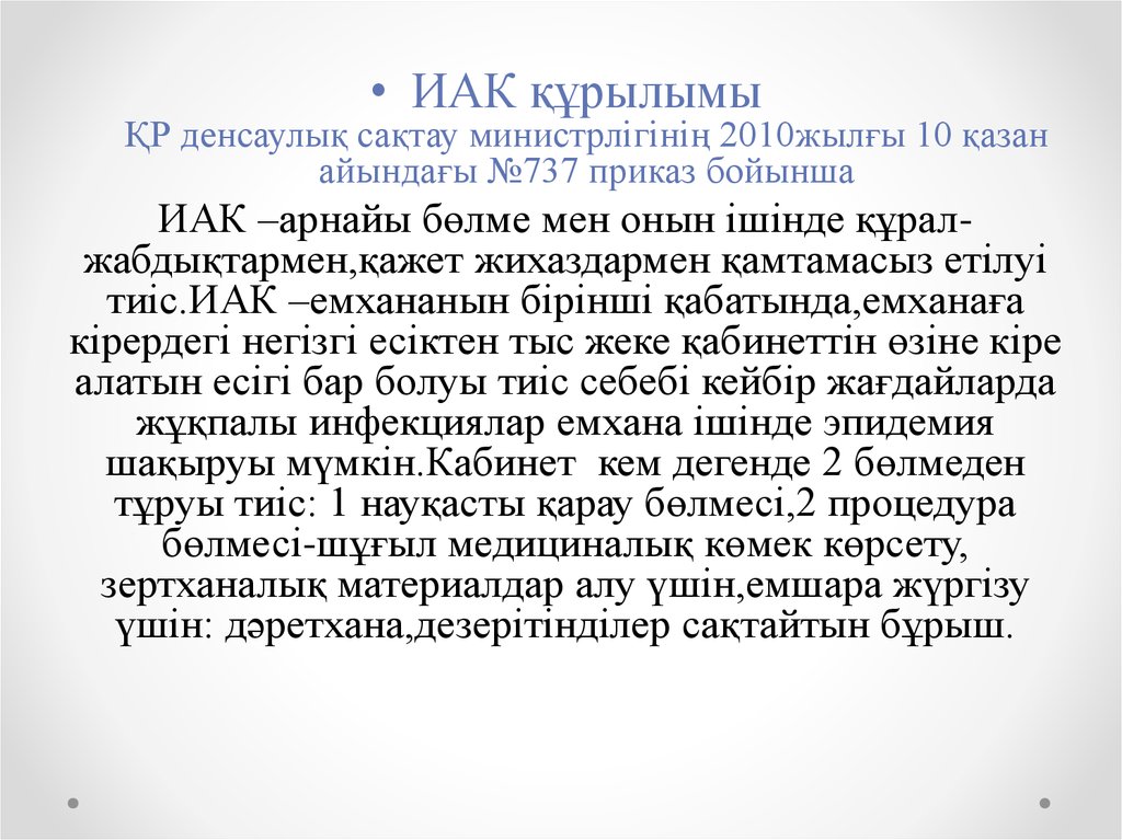 4. ИАК ұйымдастырылуы ҚР денсаулық сақатау министрлігінің 2010жылғы 10 қазан айындағы №737 приказ бойынша