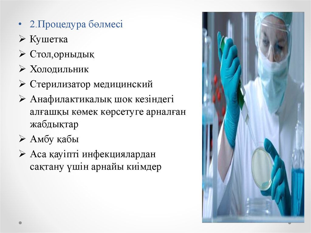 • Инфекционист кабинеті – жеделинфекциялық аурулардың емі мен ерте