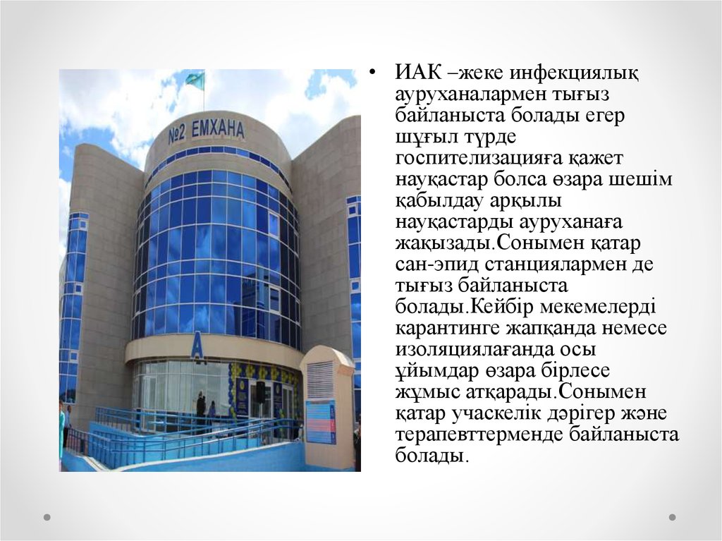 • ИАК –жеке инфекциялықауруханалармен тығыз