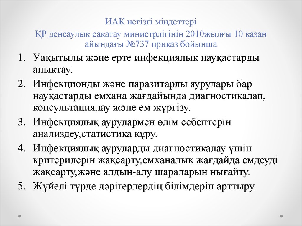 ИАК негізгі міндеттеріҚР денсаулық сақатау министрлігінің 2010жылғы 10 қазан