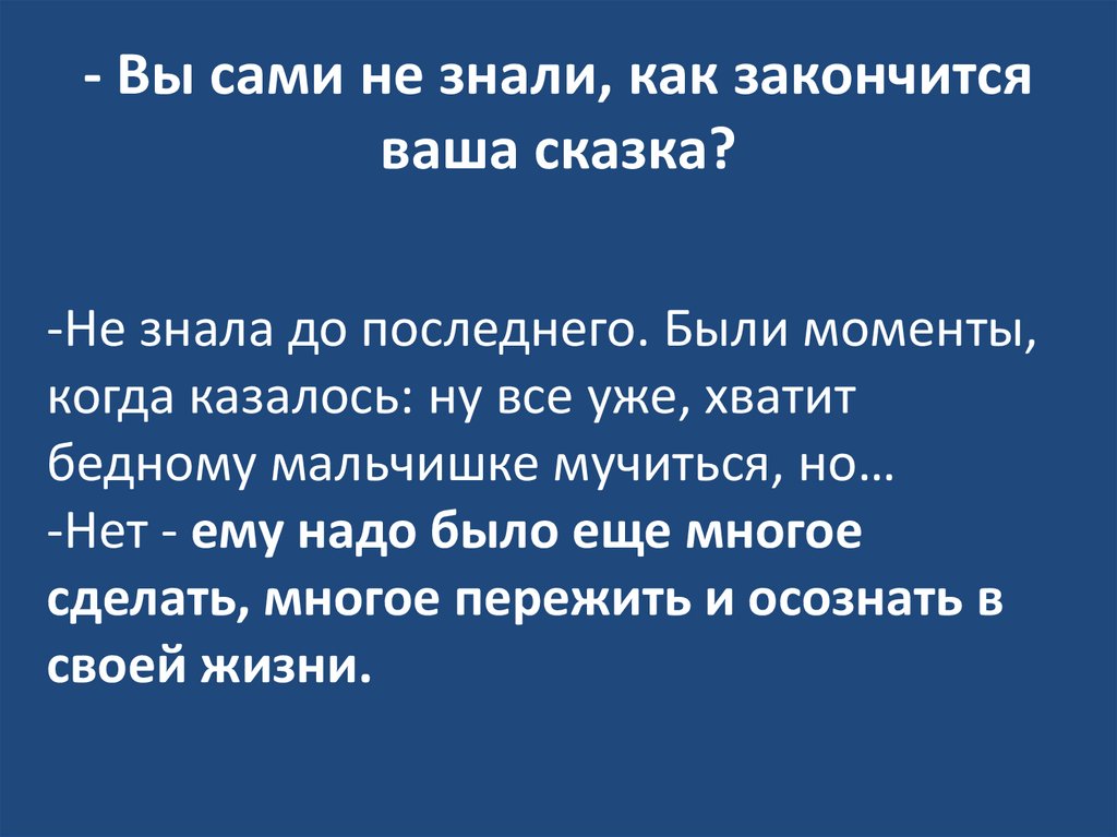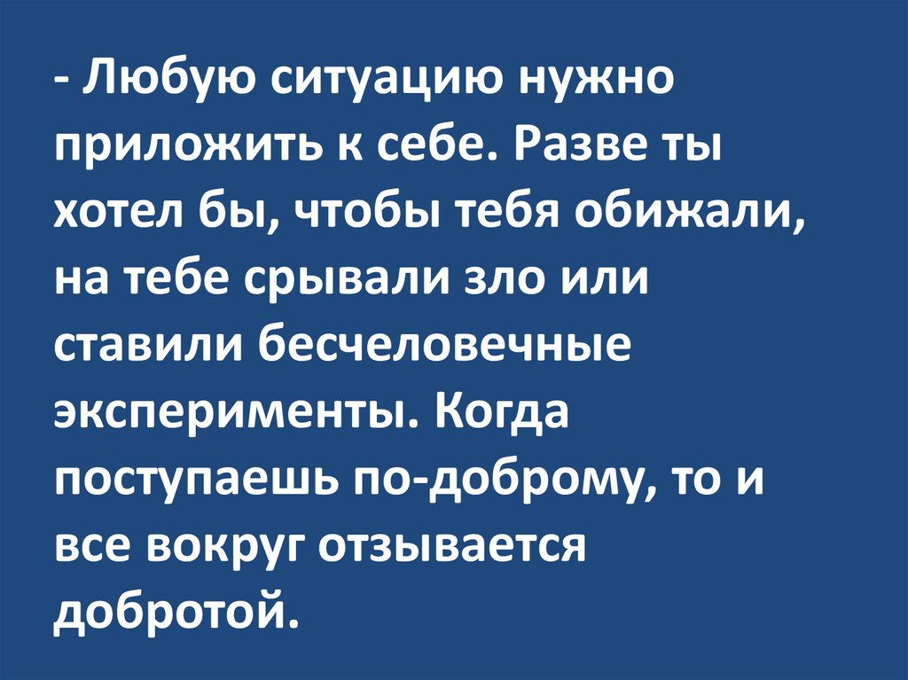 - Любую ситуацию нужноприложить к себе. Разве ты