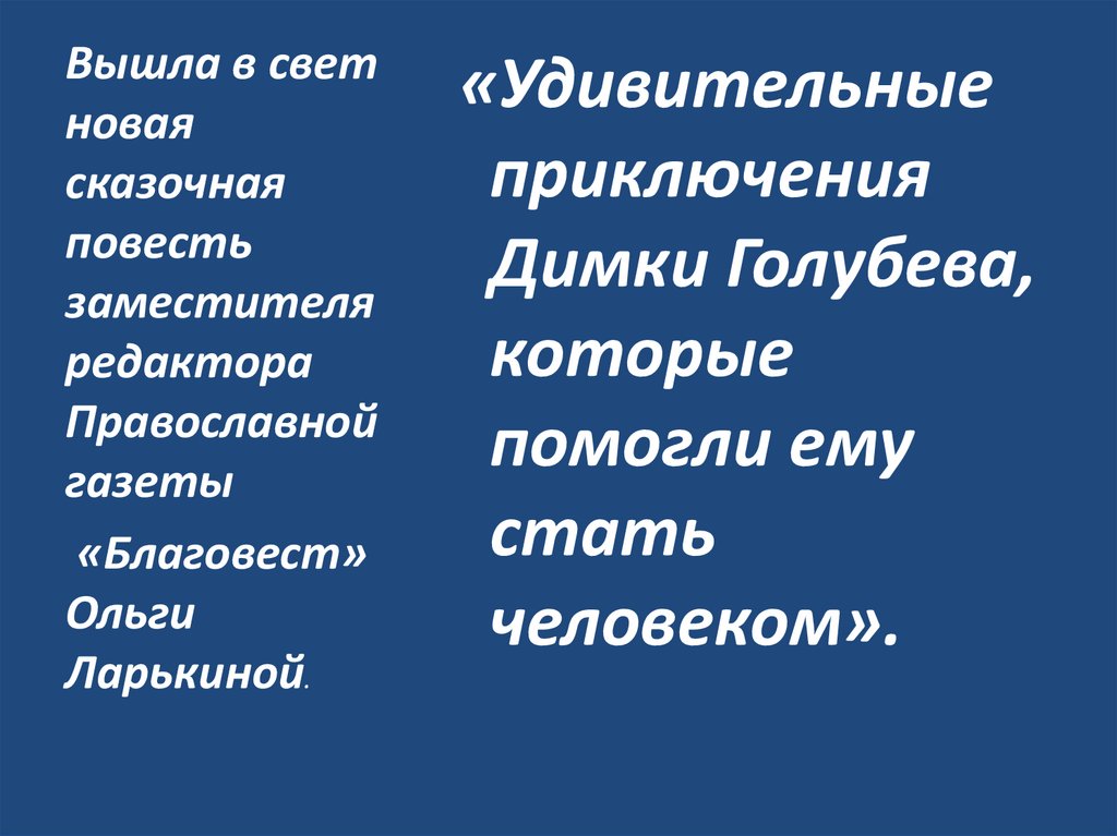 Сказочная повесть Ольги Ларькиной «Удивительные приключения Димки Голубева, которые помогли ему стать человеком»