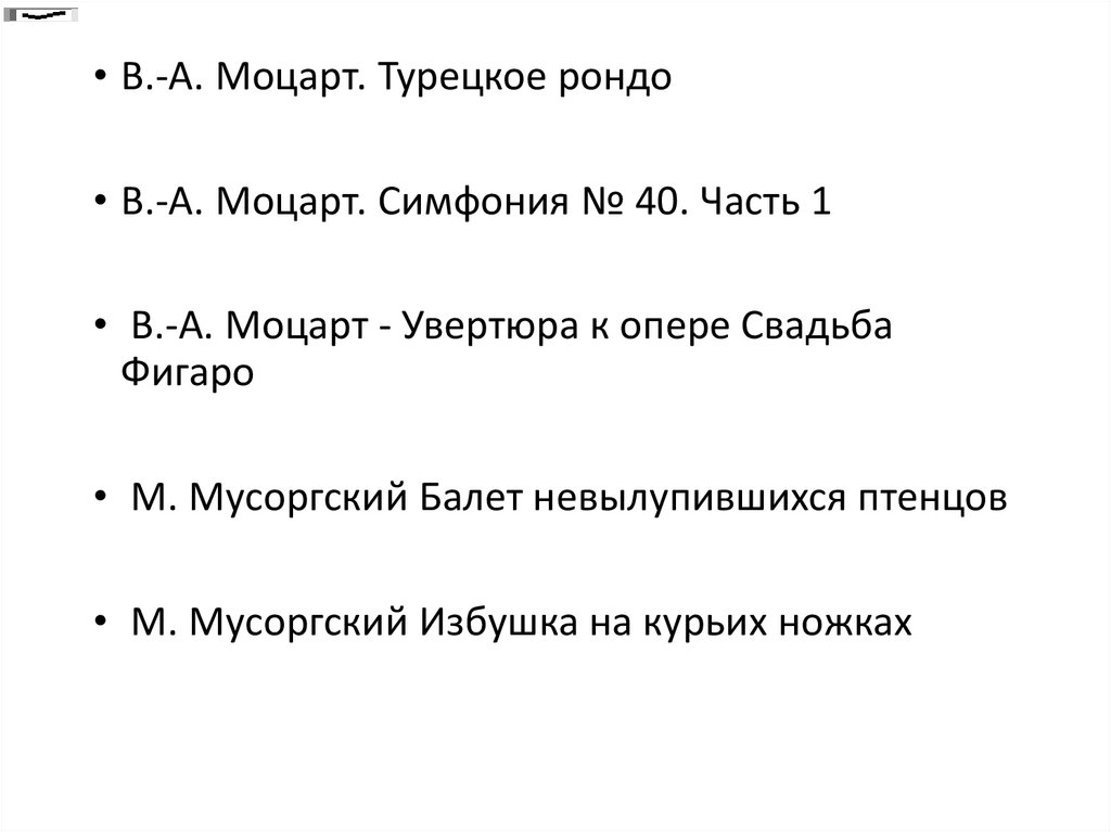 • В.-А. Моцарт. Турецкое рондо• В.-А. Моцарт. Симфония № 40. Часть 1