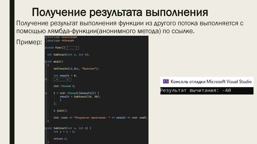 Получение результата выполненияПолучение результат выполнения функции из другого потока выполняется с