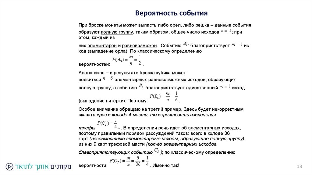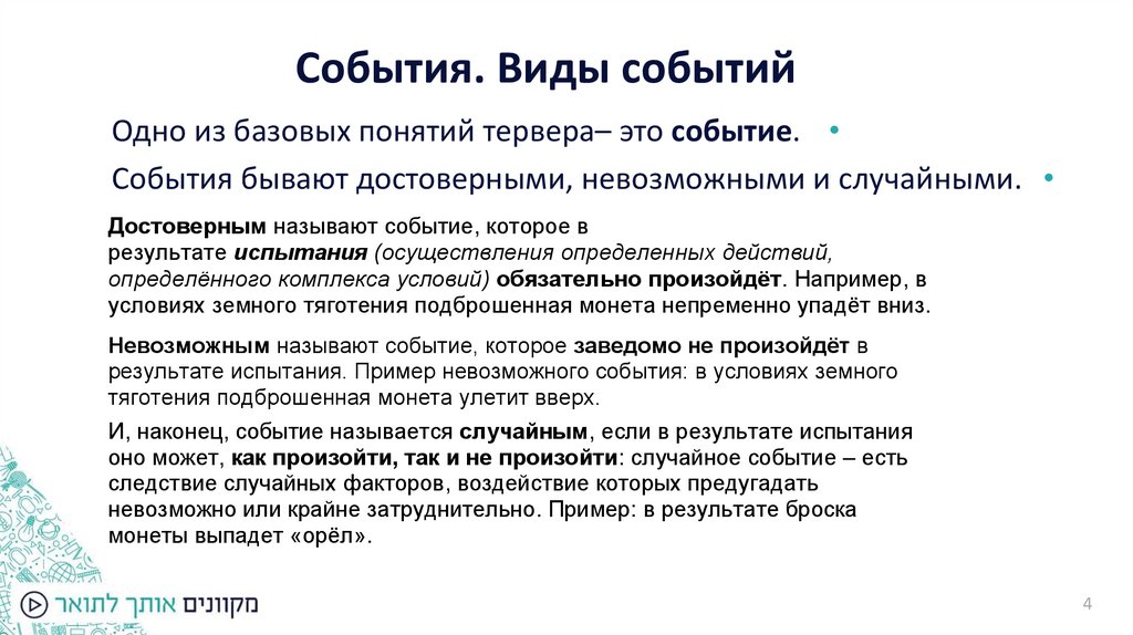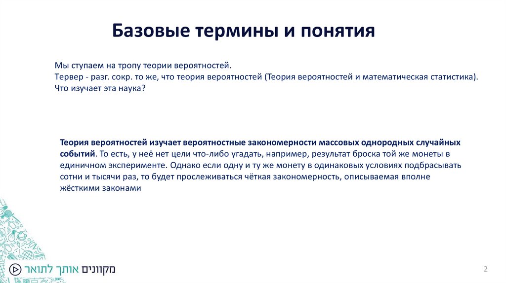 Базовые термины и понятияMы ступаем на тропу теории вероятностей.