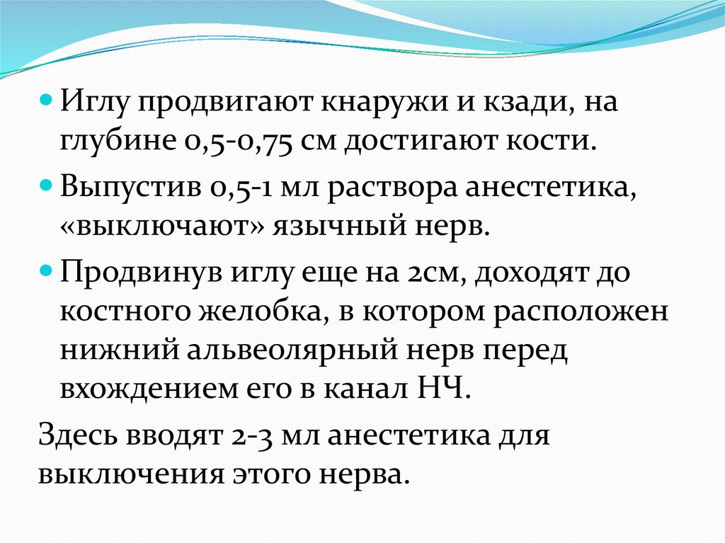Мандибулярная анестезияЦель: блокада нижнего альвеолярного и язычного