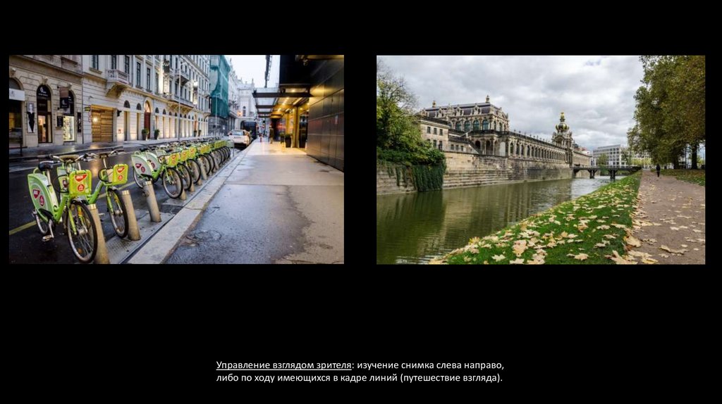 Управление взглядом зрителя: изучение снимка слева направо,либо по ходу имеющихся в кадре линий (путешествие взгляда).
