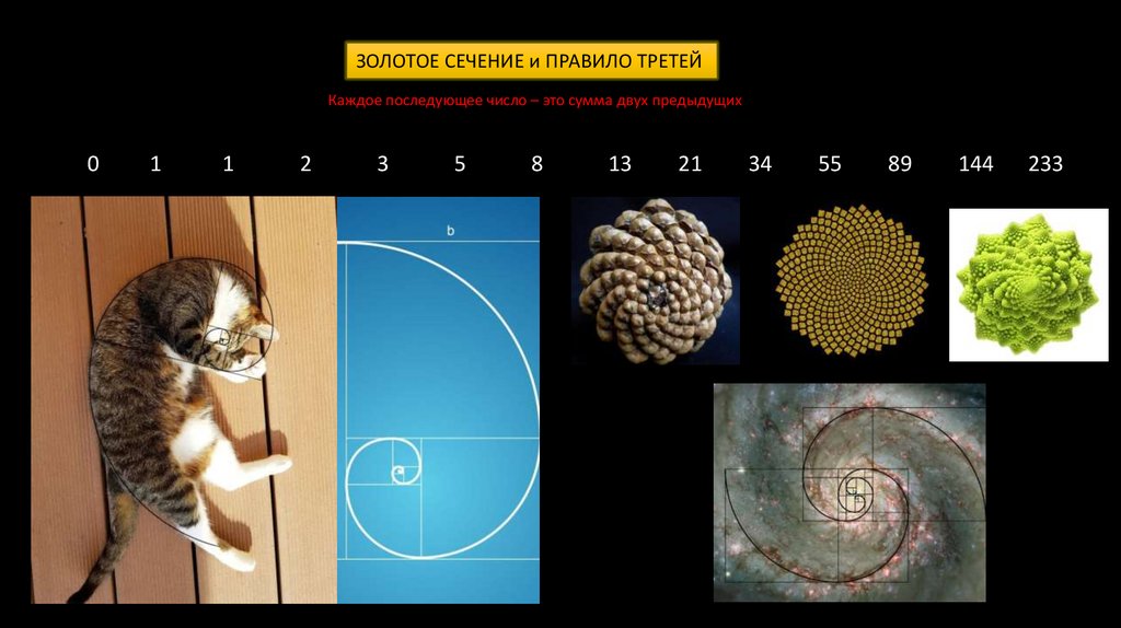 ЗОЛОТОЕ СЕЧЕНИЕ и ПРАВИЛО ТРЕТЕЙКаждое последующее число – это сумма двух предыдущих