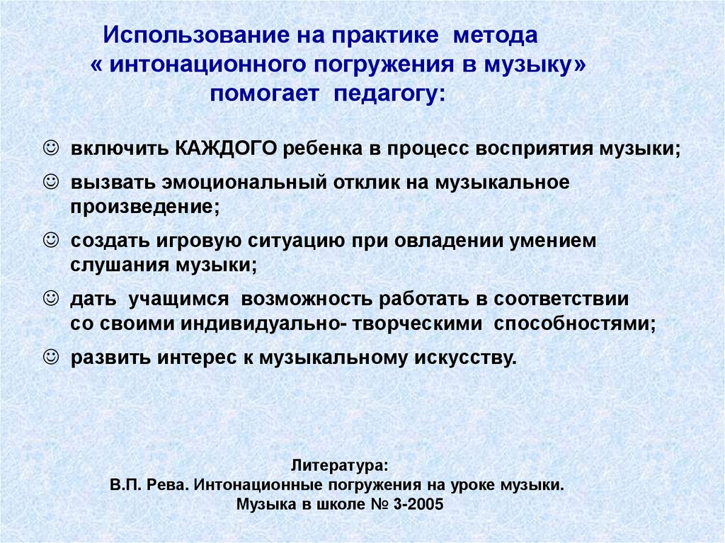 В.П. Рева. Интонационные погружения на уроке музыки.