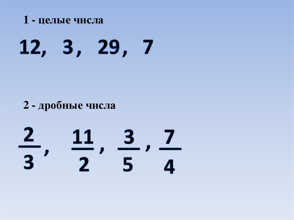 Разбейте числа на 2 группы:1 - целые числа; 2 - дробные числа